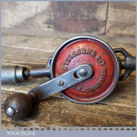 Vintage J. A. Chapman egg beater double pinion hand drill in good used condition and ready for use.