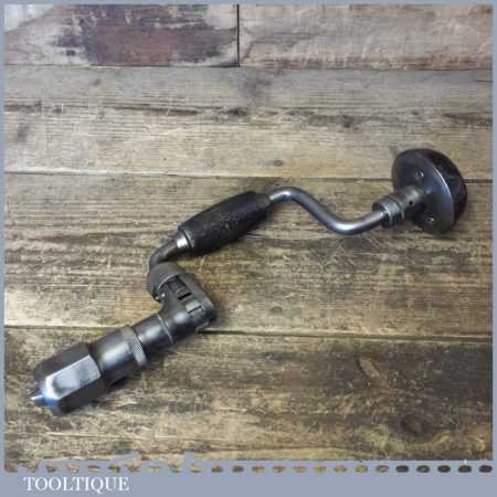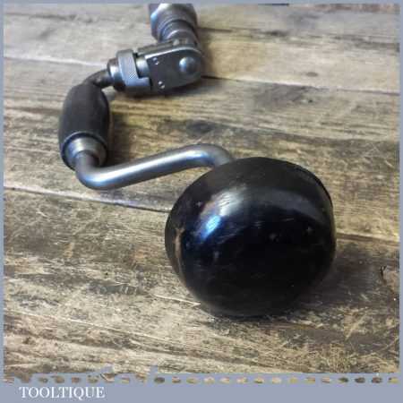 Vintage J. A. Chapman, Stanley works (1937-1961) carpenter’s ratchet brace with beechwood handles and a 6” swing, refurbished ready for use.
