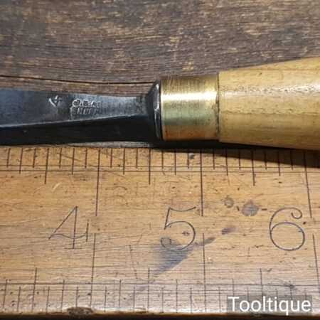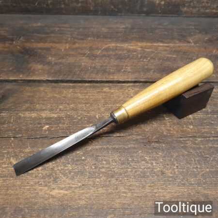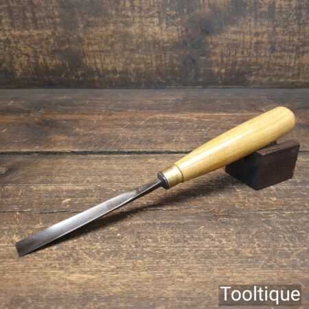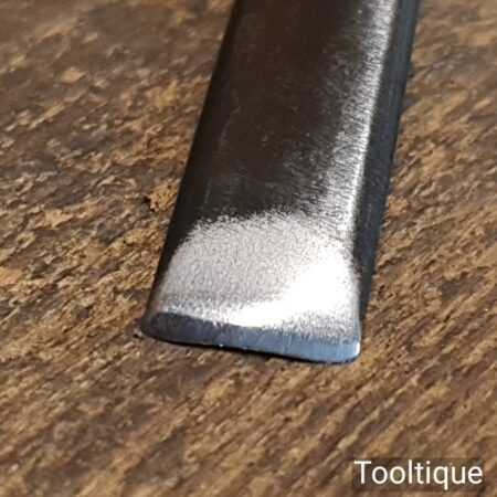 The chisel has been checked to ensure the tang is seated properly and the handle is solid and fit for use. All refurbished chisels are water-cooled during the sharpening process to ensure the tempering is not affected.