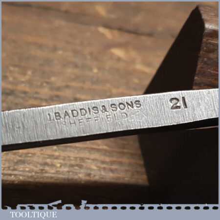 Vintage J. B. Addis & Sons 1/2” No: 21 woodcarving spoon gouge chisel with hardwood handle in good used condition, fully refurbished sharpened and honed ready for use.