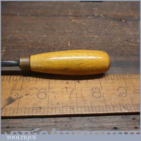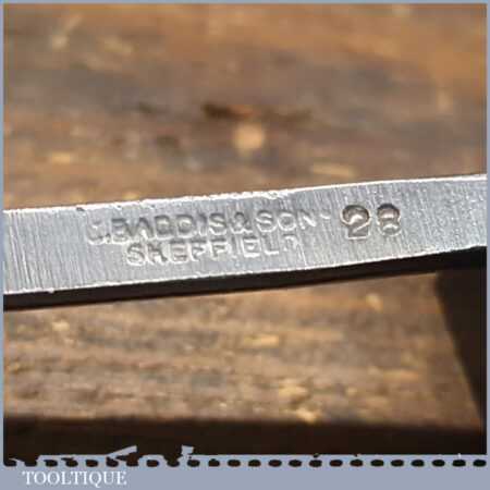 The chisel has been checked to ensure the tang is seated properly and the handle is solid and fit for use. All refurbished chisels are water cooled during the sharpening process to ensure the tempering is not affected
