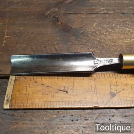 Vintage J. B. Addis & Sons carpenter’s 7/8” gouge chisel with London pattern hardwood handle in good used condition, fully refurbished sharpened and honed ready for use. Rarely do you find standard gouges by Addis.