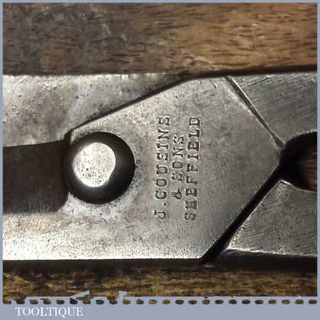 Vintage J. Cousins & Sons metal worker’s 7” tin snips in good used condition.