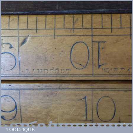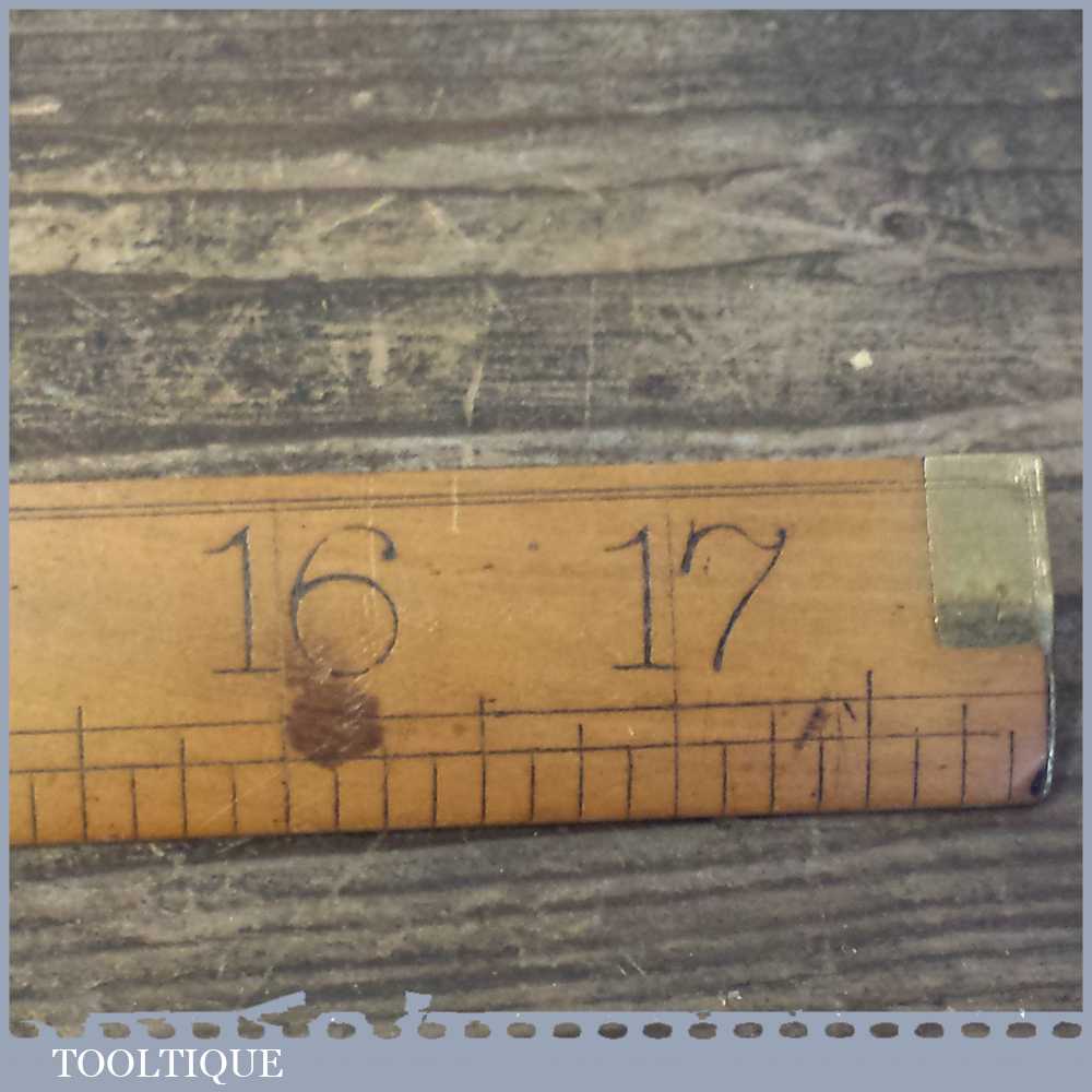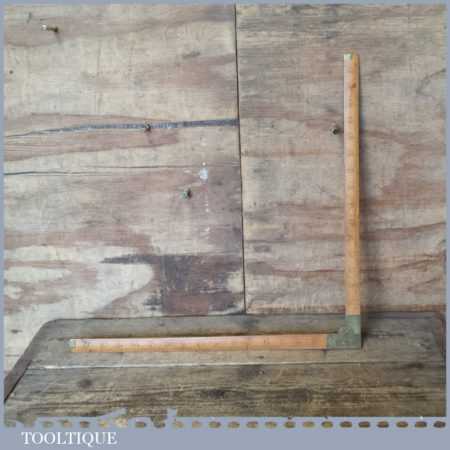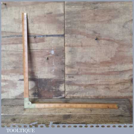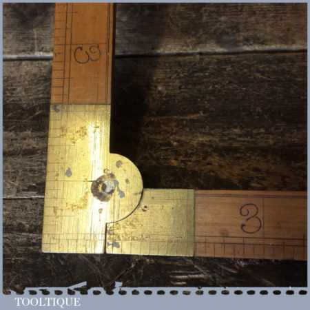 Vintage J. E. Buck of Landport, boxwood and brass 18” folding tailors square & ruler, in good used condition. Note: chip to one edge please see images