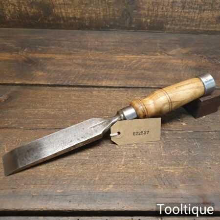 The chisel has been checked to ensure the tang is seated properly and the handle is solid and fit for use. All refurbished chisels are water cooled during the sharpening process to ensure the tempering is not affected.