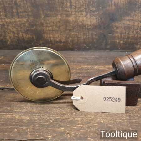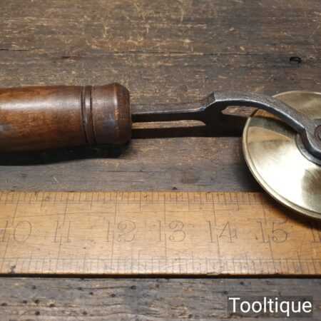 Vintage J. Francis, 35 Holborn, London brass double-lined bookbinding wheel in good used condition. The lines produced by this tool is of two thicknesses.