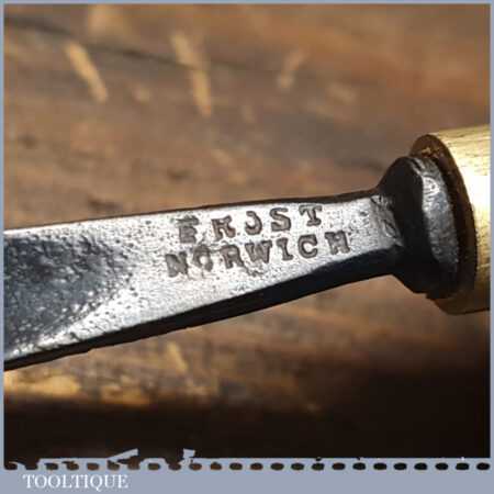 Vintage J. Frost of Norwich 1/2” straight woodcarving gouge chisel with beechwood handle in fair used condition, fully refurbished sharpened and honed ready for use.