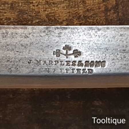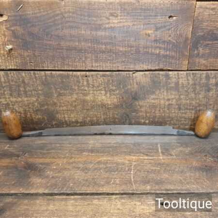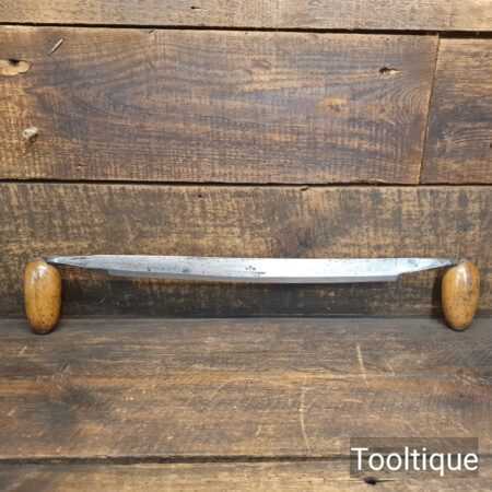 Vintage J. Marples & Sons curved drawknife with 12″ wide cutting edge and beechwood handles, in good used condition and sharpened for use. Note: One handle has had a touch of worm (see images) these have been liquid resin filled to restore strength.