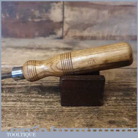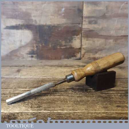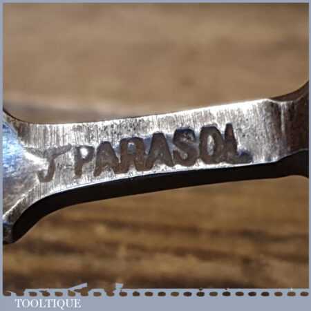 Vintage J. Parasol carpenter’s 1/2” gouge chisel with ash handle in good used condition, fully refurbished sharpened and honed ready for use.