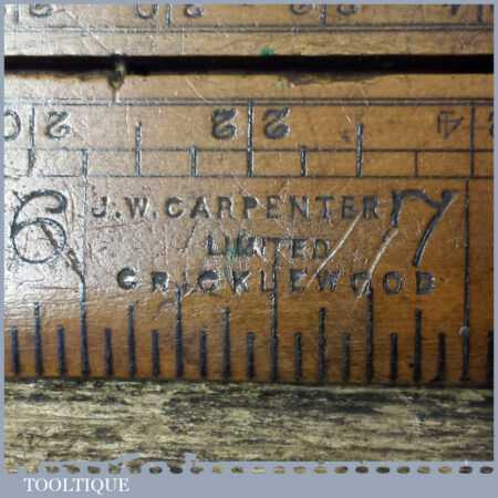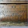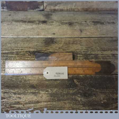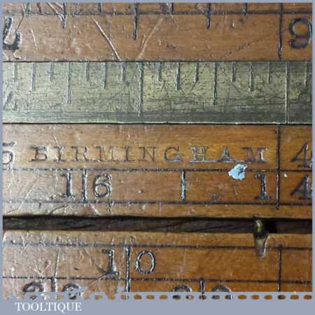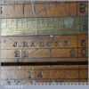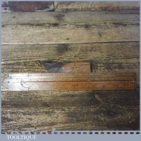 Vintage J. Rabone & Sons 24″ single fold boxwood and brass extending slide rule with protractor in good used condition.