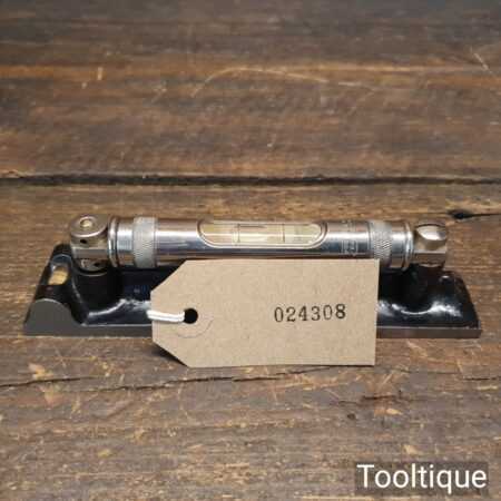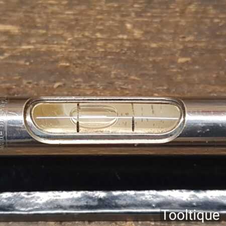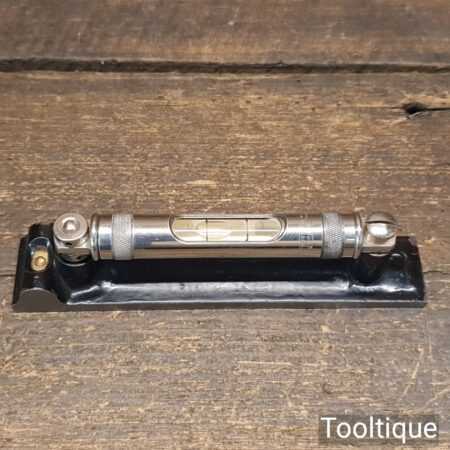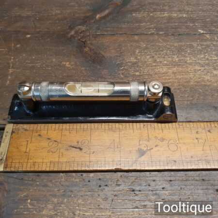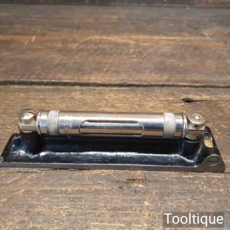 Vintage J. Rabone & Sons engineer’s 6” machinist’s spirit level with original clear bubble tube and nickel plated revolving protective cover and adjustment screws, in good, lightly used condition