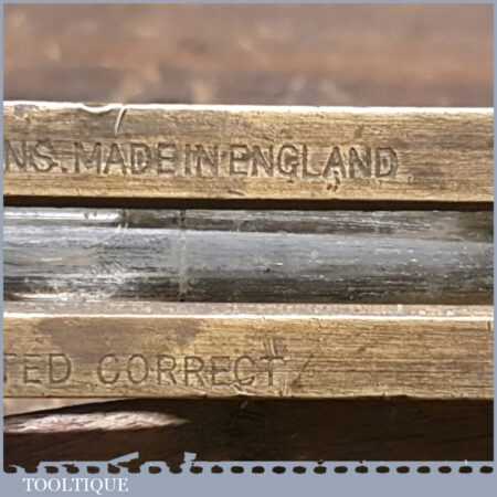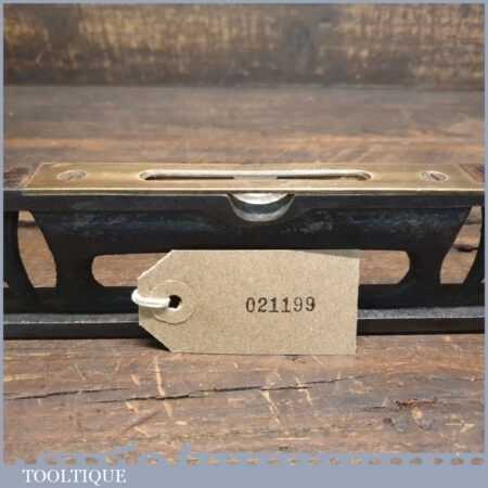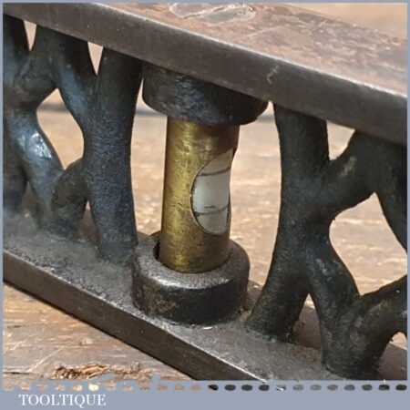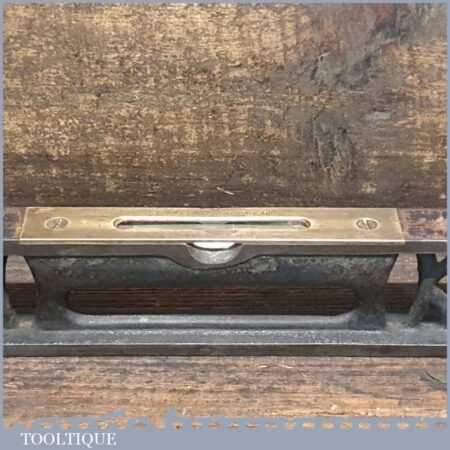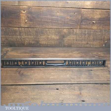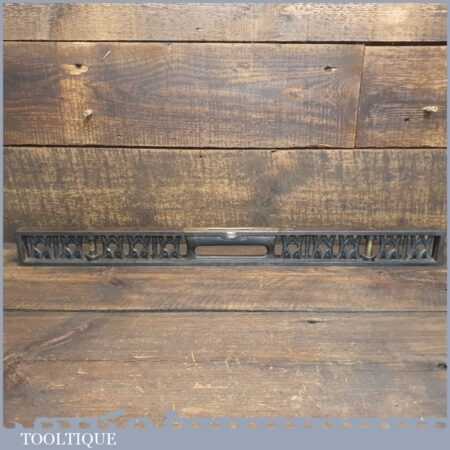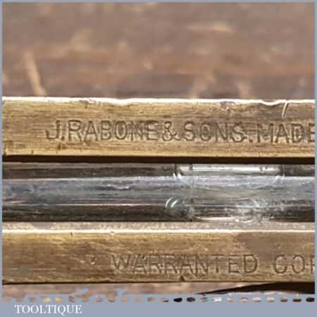 Vintage J. Rabone & Sons machinist’s 24” cast steel and brass spirit level with original clear bubble tubes in good used condition. Note: the level hasn’t been tested and may require adjustments.