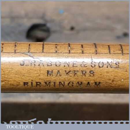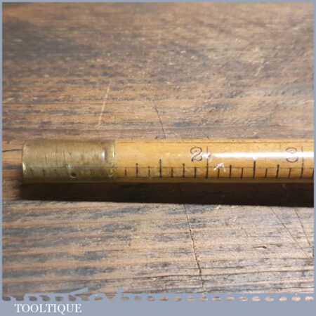 Vintage J. Rabone & Sons No: 1035 round beechwood and brass yardstick in good used condition. Note: these are rarely 100% straight and are for measuring purposes only