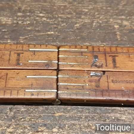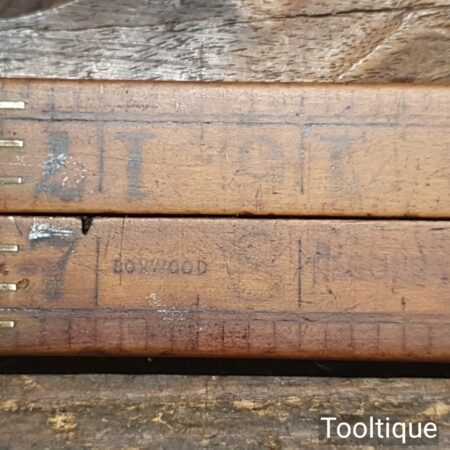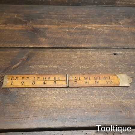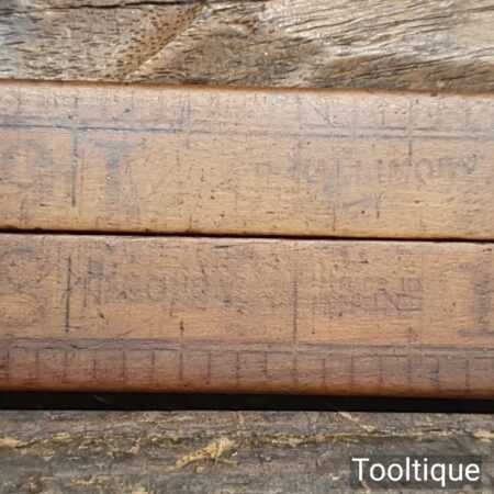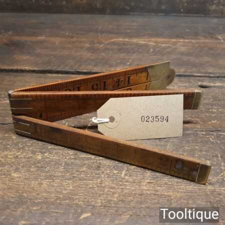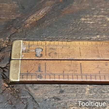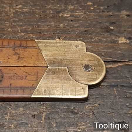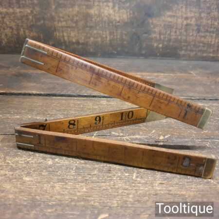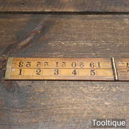 Vintage J. Rabone & Sons No: 1167 boxwood and brass 24” folding ruler in fair used condition. Note: Good readable internal scale but worn outer scales and numbers, decorative though with nice patina.