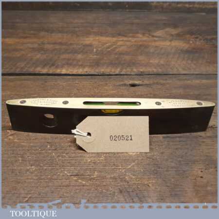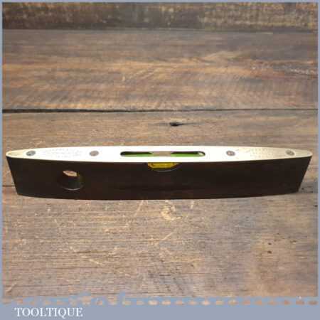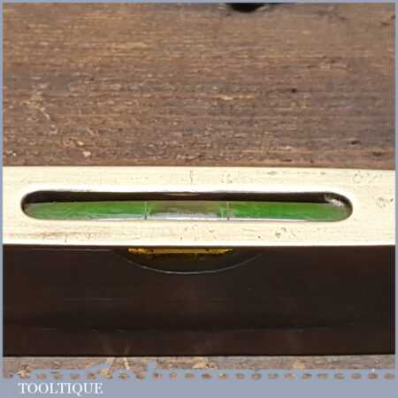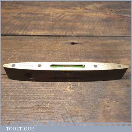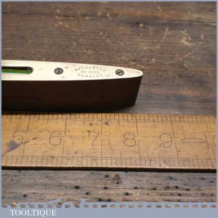 Vintage J. Rabone & Sons No: 1625 mahogany and brass 8” boat level in good used condition. Note: The level has not been tested and may require resetting in putty if intended for use.