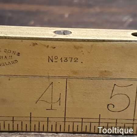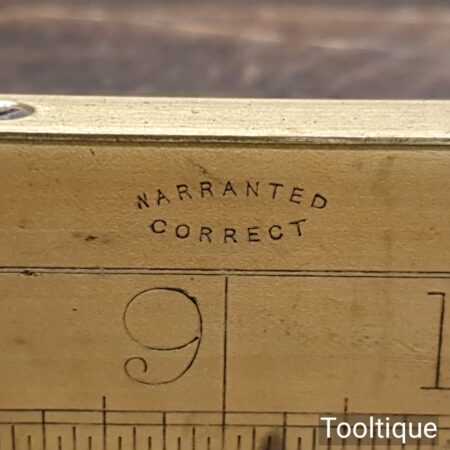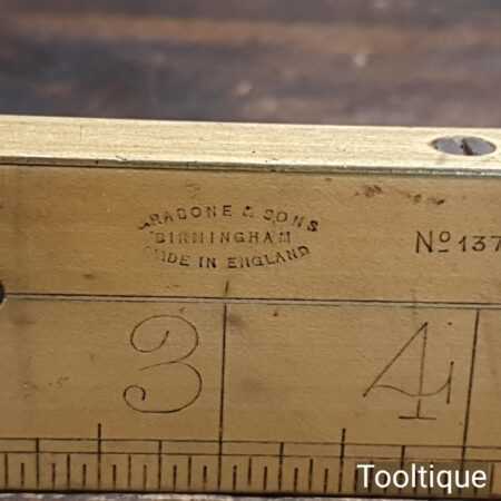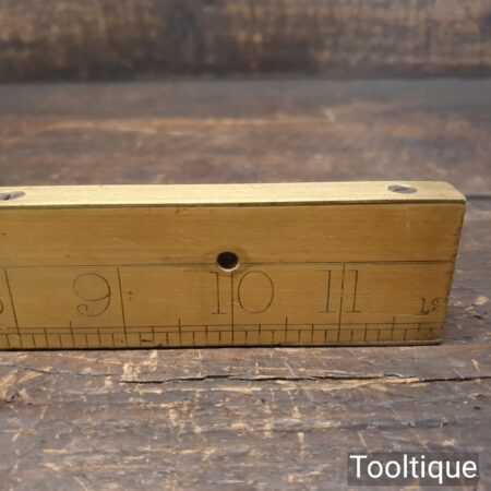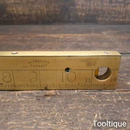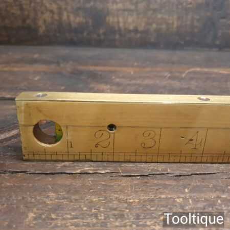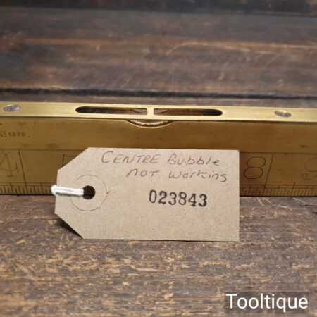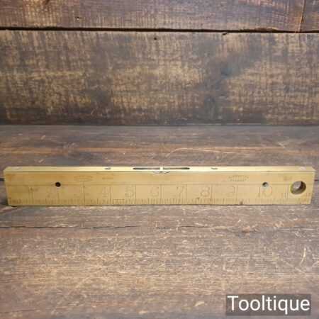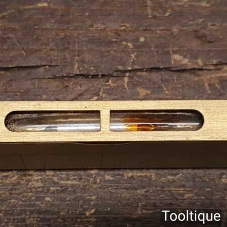 Vintage J. Rabone & Sons No: 1672 boxwood and brass 12” calibrated spirit level in good used condition. Note: centre bubble not working other bubble has been replaced at some point.