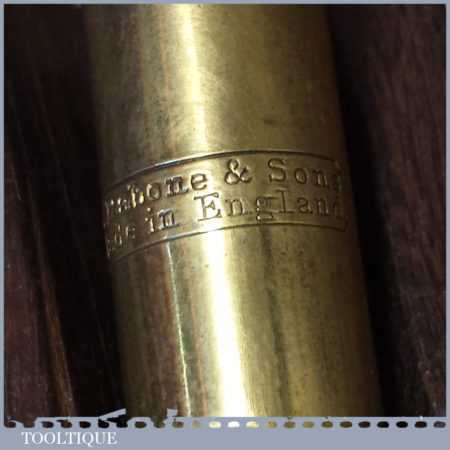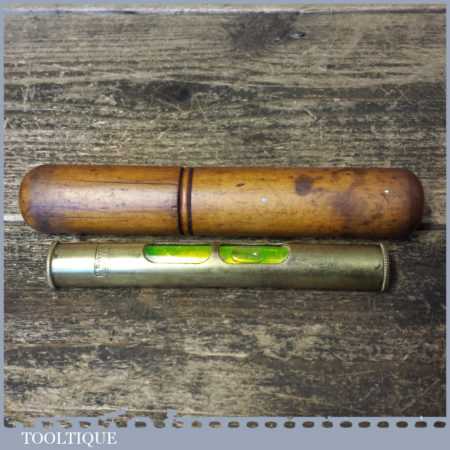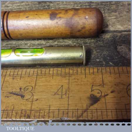 Vintage J. Rabone & Sons engineer’s 4 ½” brass pocket spirit level in original beechwood container, in good used condition.