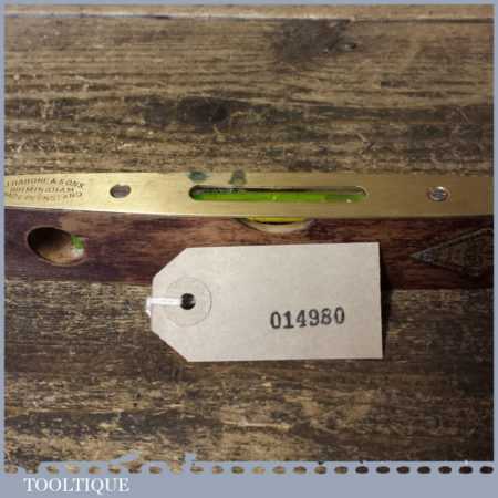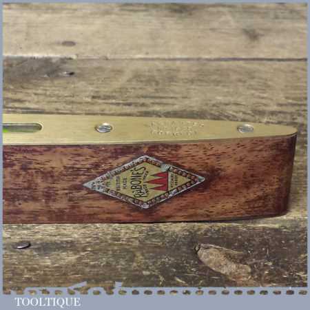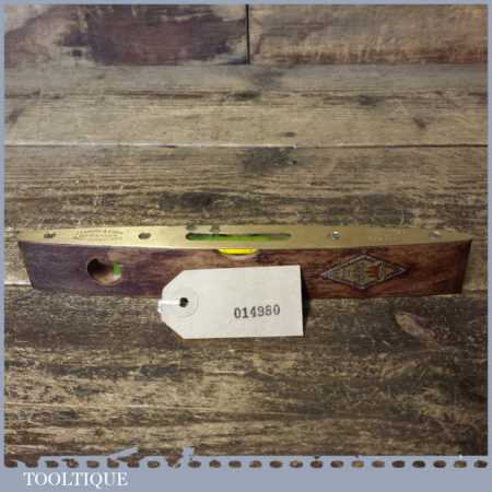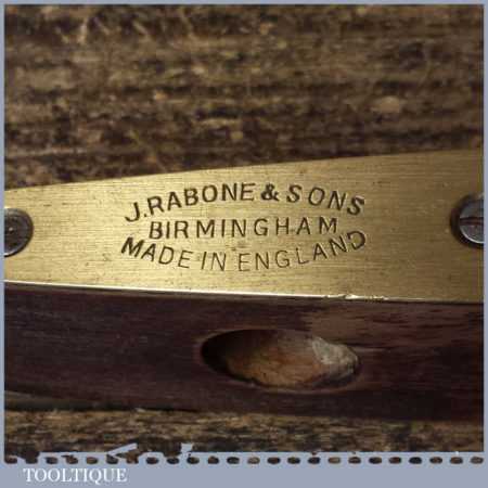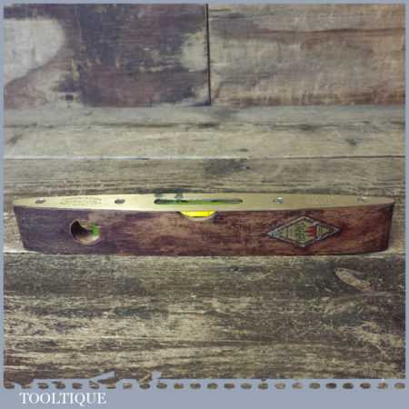 Vintage J. Rabone & Sons mahogany and brass 9” boat level with double glass bubbles in a good used condition. Note: this has not been tested and may require resetting in putty if you intend using it