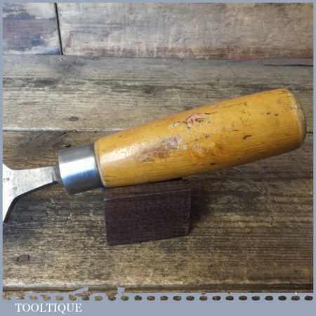 The chisel has been checked to ensure the tang is seated properly and the handle is solid and fit for use. All refurbished chisels are water cooled during the sharpening process to ensure the tempering is not affected. These old cast steel chisels are hand forged and far superior in quality because of the high carbon steel that was used which produces a keener edge, this was also generally used throughout the full length.
