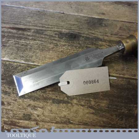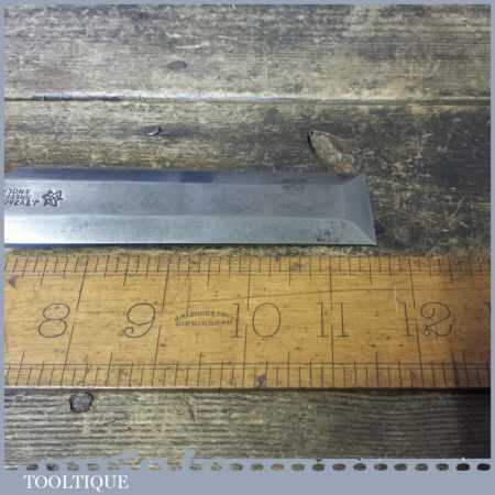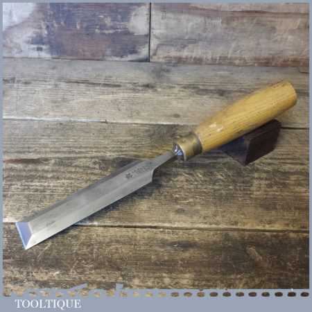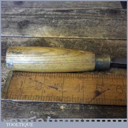 The chisel has been checked to ensure the tang is seated properly and the handle is solid and fit for use. All refurbished chisels are water cooled during the sharpening process to ensure the tempering is not affected. These old cast steel chisels are hand forged and far superior in quality because of the high carbon steel that was used which produces a keener edge, this was also generally used throughout the full length.