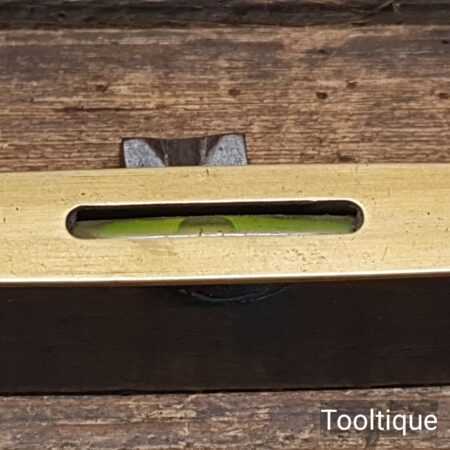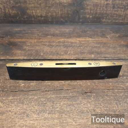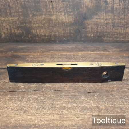 Vintage J. Tyzack & Sons 9″ rosewood and brass spirit level in good used condition.