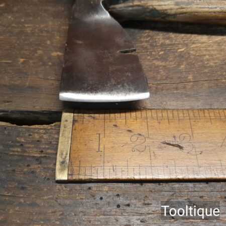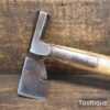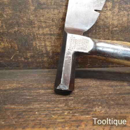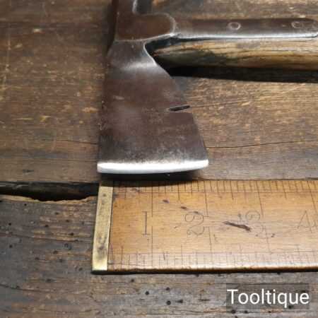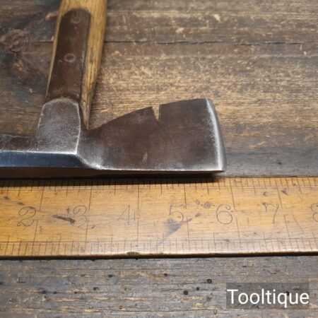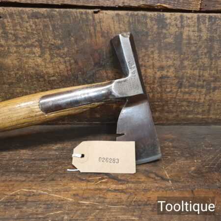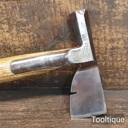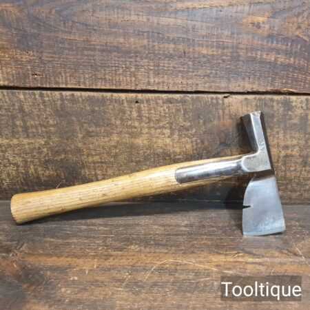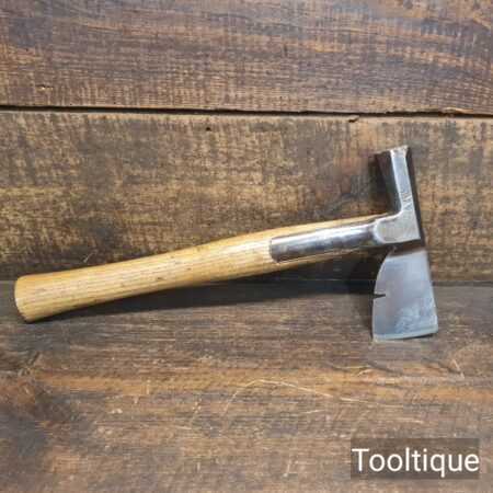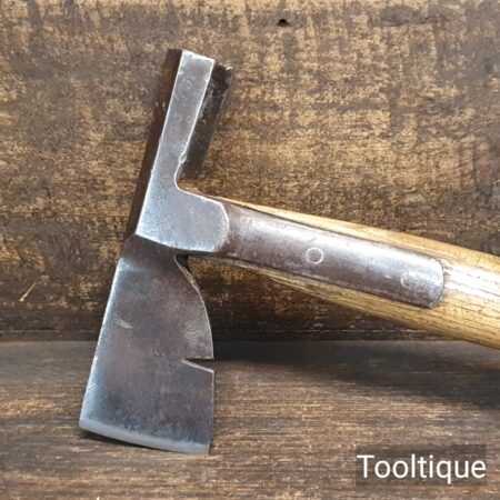 Vintage J. Tyzack & Sons No.1 Strapped Slaters Roofing Lathing Hammer Axe with beechwood handle measuring 13” long in total, with a 1 ⅛” cutting edge the hatchet has been sharpened and water cooled to not change the temper. Note: Chipped on side of hammer head.