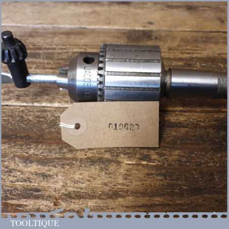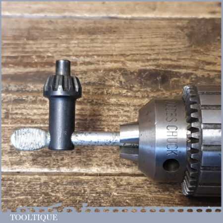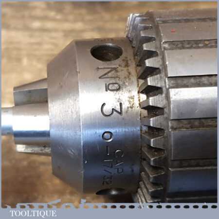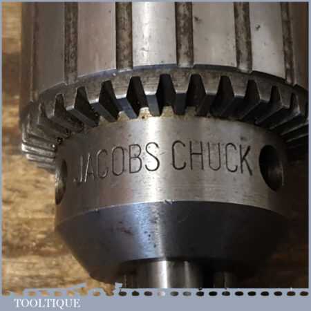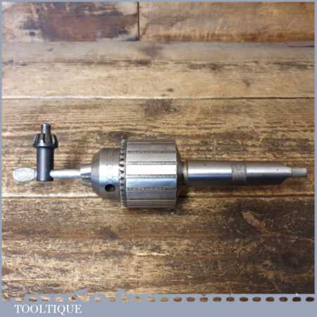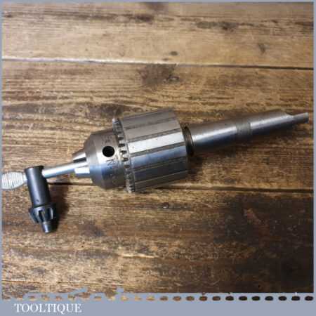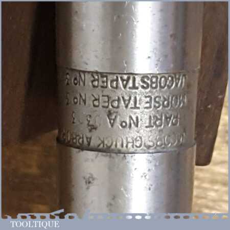 Vintage Jacobs No: 3 Morse taper drill chuck for lathe or drill stand in good used condition. The thickest part of the taper is approx 7/8” and includes the chuck key seen in the images.