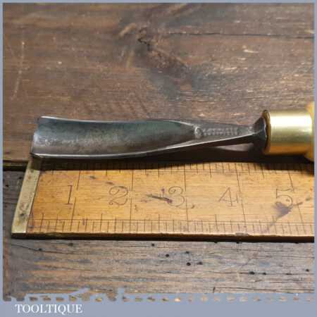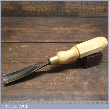 Vintage James Howarth 1” curved wood carving gouge chisel with London pattern boxwood handle in good used condition, fully refurbished sharpened and honed ready for use