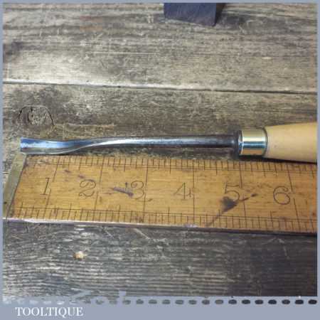Vintage James Howarth 3/8” spoon bit wood carving “V” parting chisel with beechwood handle in good used condition, fully refurbished sharpened and honed ready for use.
