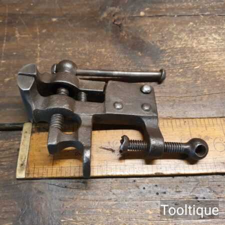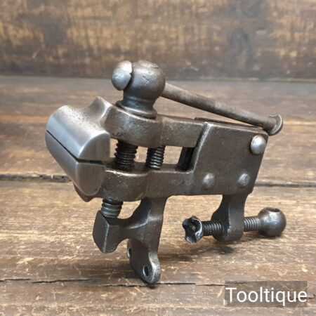 Vintage jewellers or modelmakers cast steel bench vice with 1 ½” jaws, in good used condition.