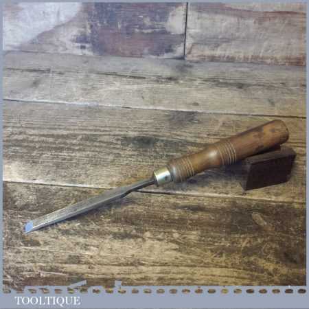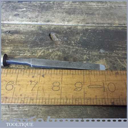 The chisel has been checked to ensure the tang is seated properly and the handle is solid and fit for use. All refurbished chisels are water cooled during the sharpening process to ensure the tempering is not affected. These old cast steel chisels are hand forged and far superior in quality because of the high carbon steel that was used which produces a keener edge, this was also generally used throughout the full length.