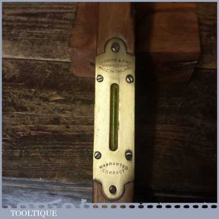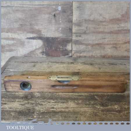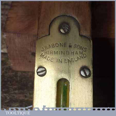 Vintage John Rabone & Sons 18” beechwood spirit level in good used condition. Note: the level hasn’t been tested and may require resetting in putty if intended for use.