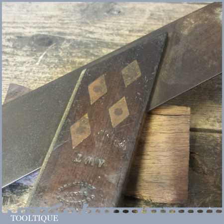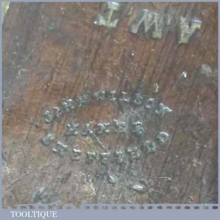 Unusual vintage John Wilson 12” carpenter’s mahogany and brass mitre hook square in good used condition. It’s unusual to find theses by this maker but also manufactured with a single brass side.