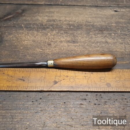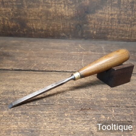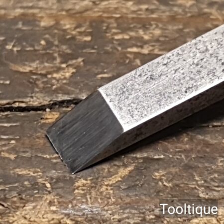 Vintage Joseph Tyzack ¼” Firmer Chisel with a hardwood handle, refurbished ready for use and in good used condition. All refurbished chisels are water cooled during the sharpening & Flattening process to ensure the tempering is not affected.