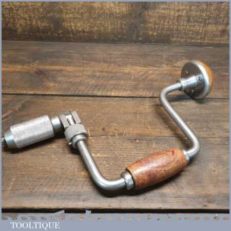 Vintage Joseph Tyzack & Son Ltd carpenter’s ratchet brace with beechwood handles and a 10” swing in good used condition, refurbished ready for use.