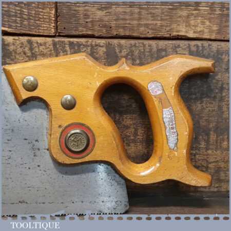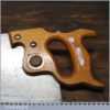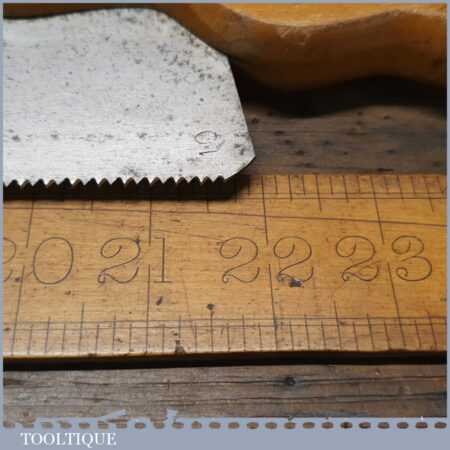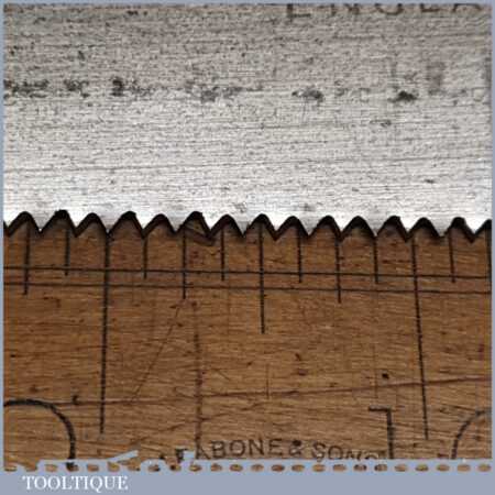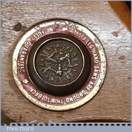 The saw has been thoroughly cleaned, jointed, resharpened and set by hand so that all the hard work of getting an old vintage saw right has been undertaken. We do this so that the next sharpening is easier and no more than a quick freshen up would be required. Those who are familiar with sharpening will know this is no small job and requires skill, effort and time to achieve good results.