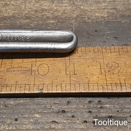 Vintage J&S British 11” Cast Steel F Wrench, refurbished ready for use and in good used condition. Note: Adjusts Freely.