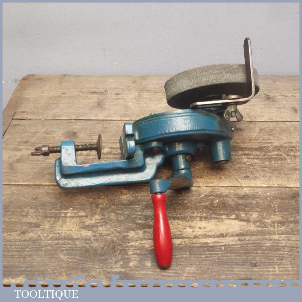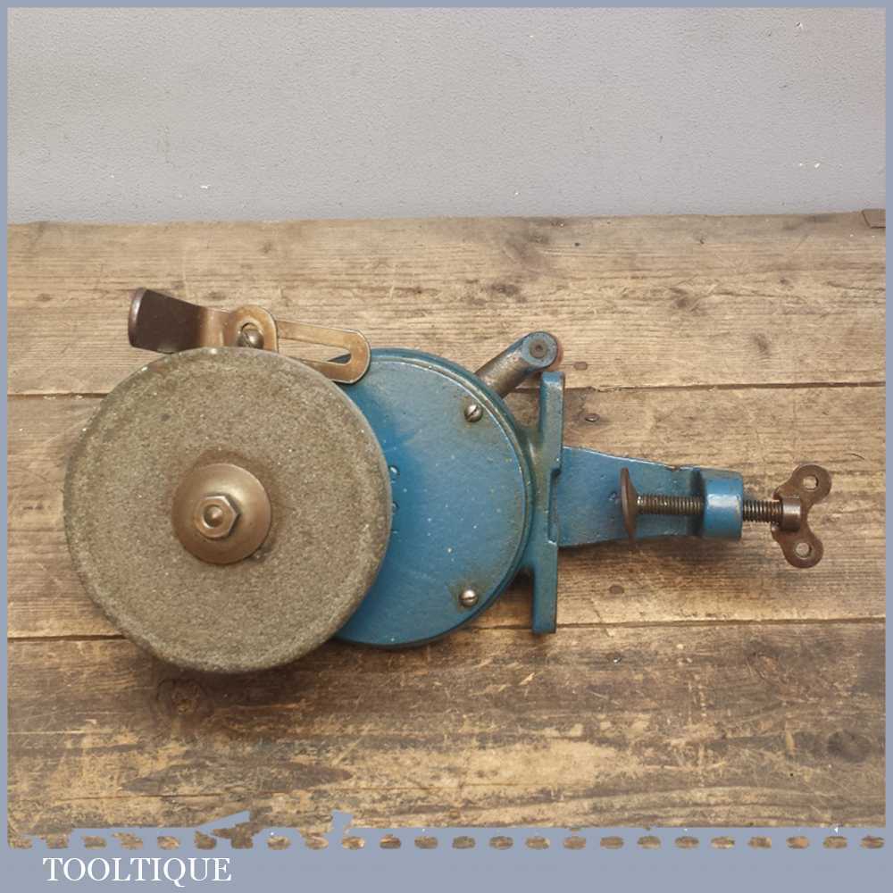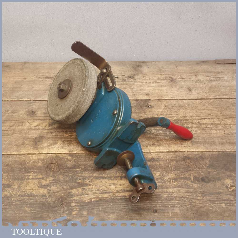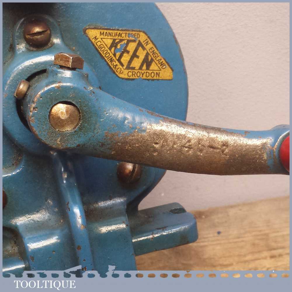 Vintage Keen Hand Grinding Wheel Sharpening stone, Table Top Tool by M.C Gooding & Co of Croydon England. Nice original decals and in good overall condition.