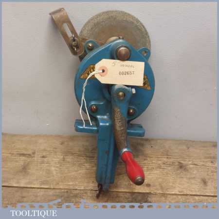 Vintage Keen Hand Grinding Wheel Sharpening stone, Table Top Tool by M.C Gooding & Co of Croydon England. Nice original decals and in good overall condition.