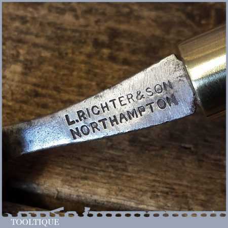 Vintage L Richter & Son leatherworking fudge wheel with beech wood handle in good used condition.