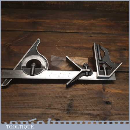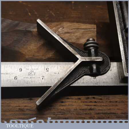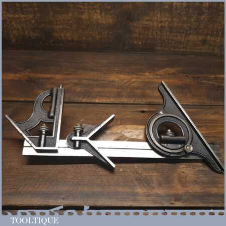 Vintage L.S.S. Co. (Starrett) USA No: 4 cast steel combination square, protractor and centre finder complete and in good used condition