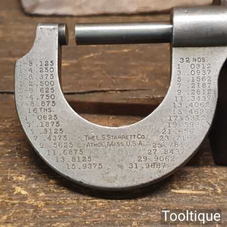 Vintage L. S. Starrett Co. USA 0”-1” imperial micrometer No: 203C in good used condition.