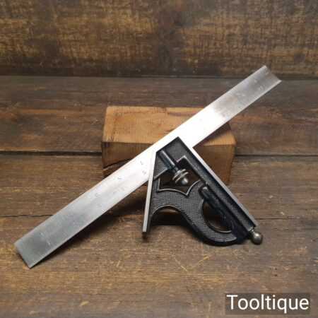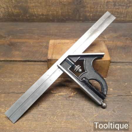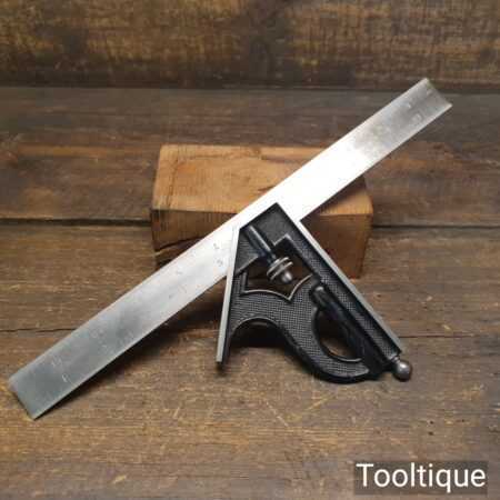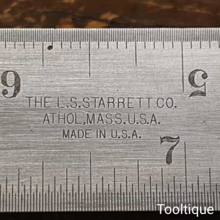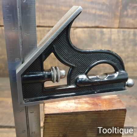 Vintage L. S. Starrett Co. USA cast steel adjustable combination square, complete with scribing pin fully refurbished and in good used condition.