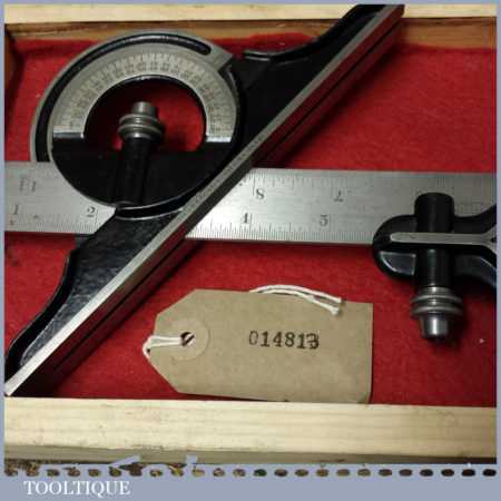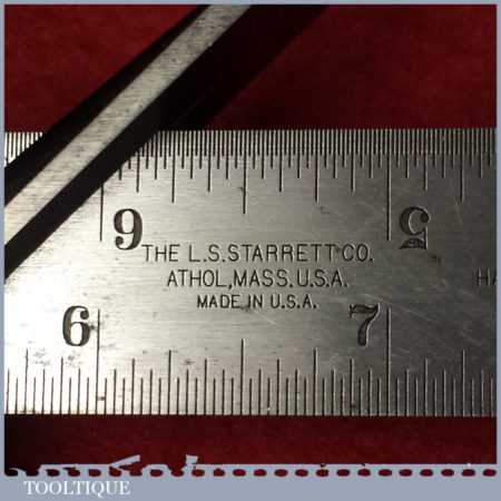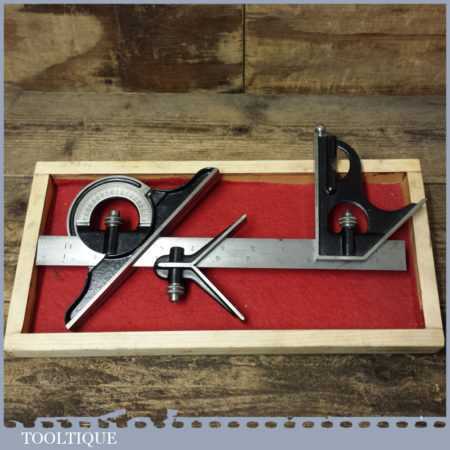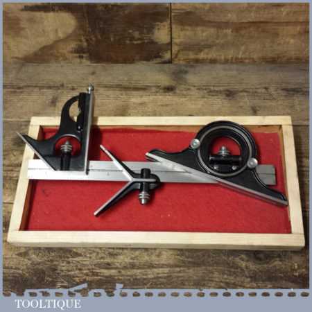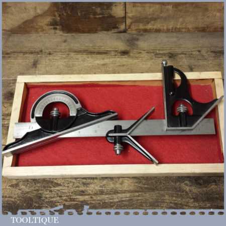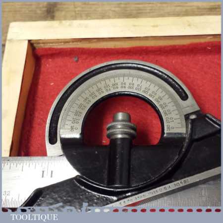 Crisp vintage L. S. Starrett Co. USA cast steel combination square, protractor and centre finder complete and in good used condition.