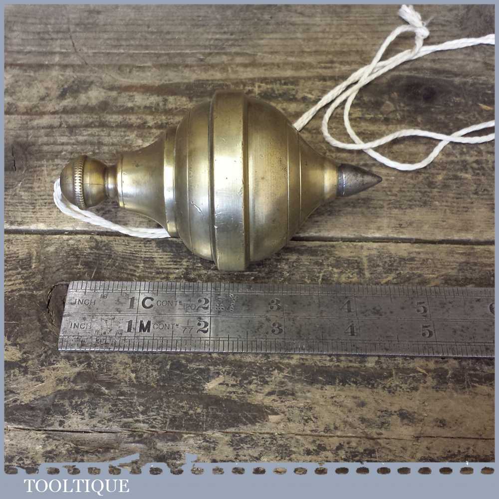 Vintage large 4 ½” long brass plumb bob with steel tip in good used condition. This is a good heavy example and really nice shape.