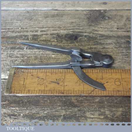Vintage leatherworking 5 ½” square leg cast steel wing dividers in good used condition.