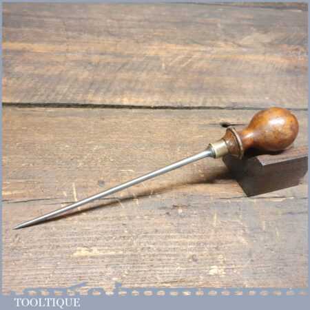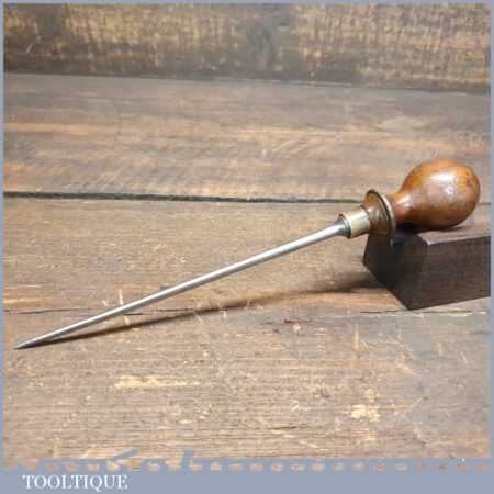 Vintage leatherworking beechwood handled shouldered marking awl in good used condition.