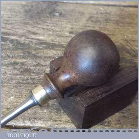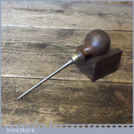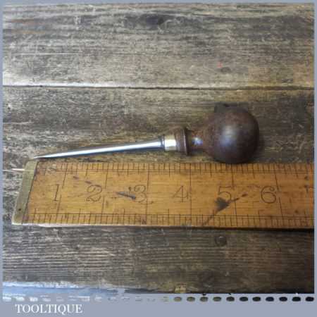 Vintage leatherworking beechwood handled shouldered pricking awl in good used condition.