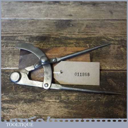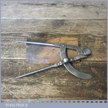 Vintage leatherworking box jointed, square leg steel dividers in good used condition.