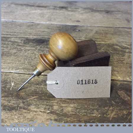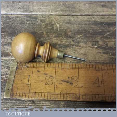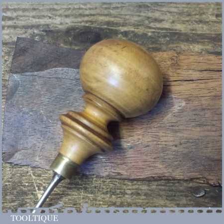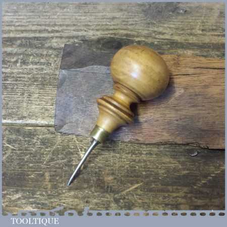 Vintage leatherworking bradawl with decorative boxwood handle, in good used condition.
